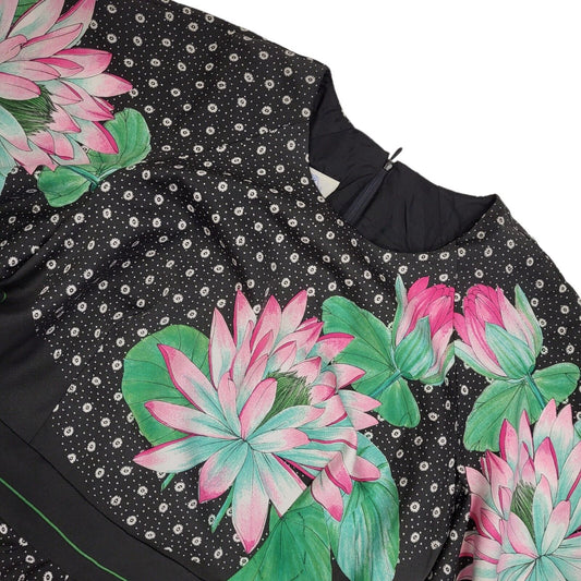 60's Vintage Japanese Black Red Floral Toggle Womens Jacket UK 16 EU 44