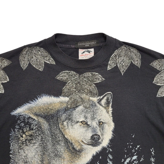 90s Vintage North Bay Canada Black Wolf T-Shirt Uk Women's Size Large