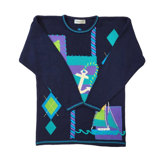 90s Vintage Nautical Jumper Women's Size S Eu 36