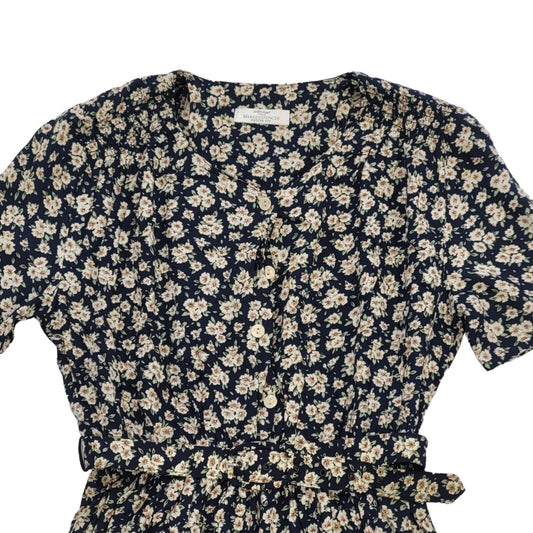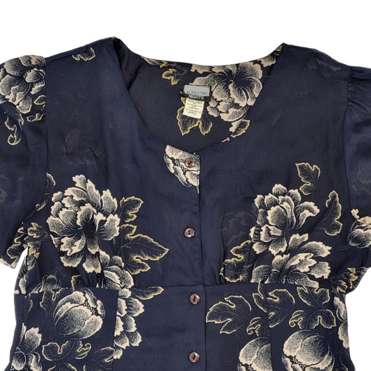 90s Vintage Laurentino Navy Floral Buttoned Daywear Dress Women's Size 16