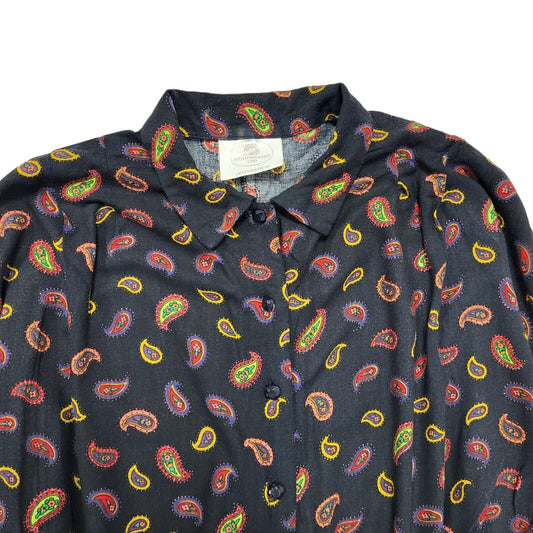 90s Vintage Nightingales Black Paisley Long Sleeve Dress Women's Size 12