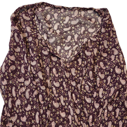 90s Vintage Maroon Paisley Sheer Tie Neck Long Sleeve Blouse Womens UK 12