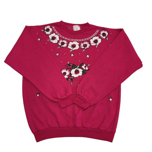 90s Vintage Pink Flower Print Retro Sweatshir Women's Size M