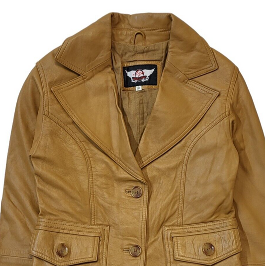 Ace Of Leather Y2K Light Brown Leather Button Up Jacket UK Women's Size 10