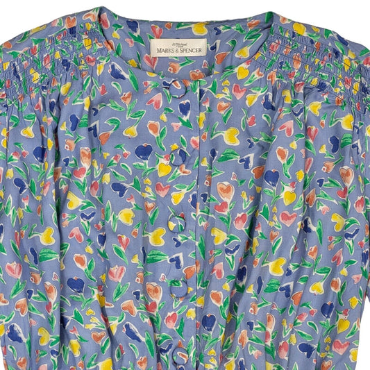 90s Vintage St Michael Blue Floral Buttoned Daywear Dress Women's Size 14