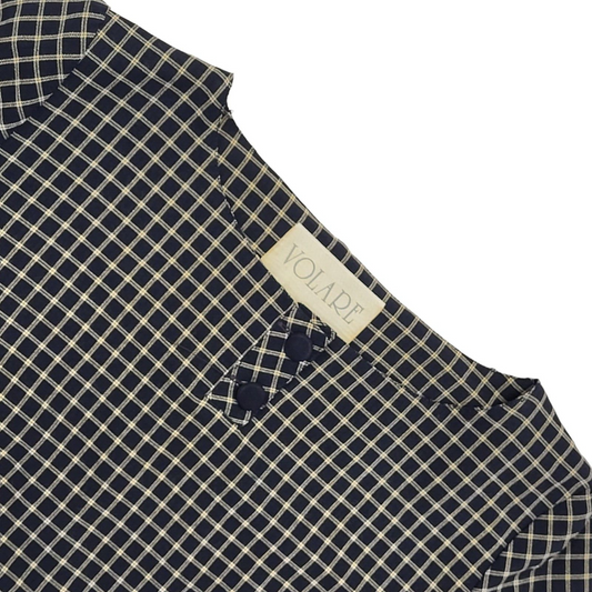 90s Vintage Volare Navy Check Pencil Daywear Dress Women's Size 14