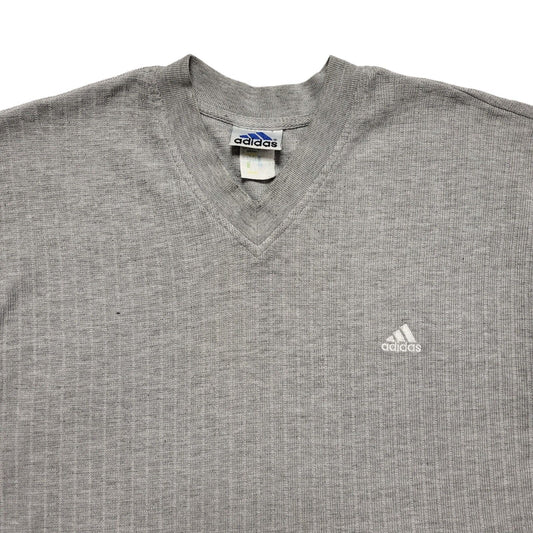Adidas Grey Vintage 90's Vintage V-Neck Short Sleeve T-Shirt Mens Size XL
