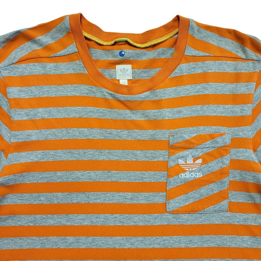 Adidas Orange & Grey Striped Vintage 90s T-Shirt Uk Men's Medium