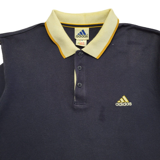 Adidas Vintage 90's Navy Blue Short Sleeve Polo Top Uk Men's Size L