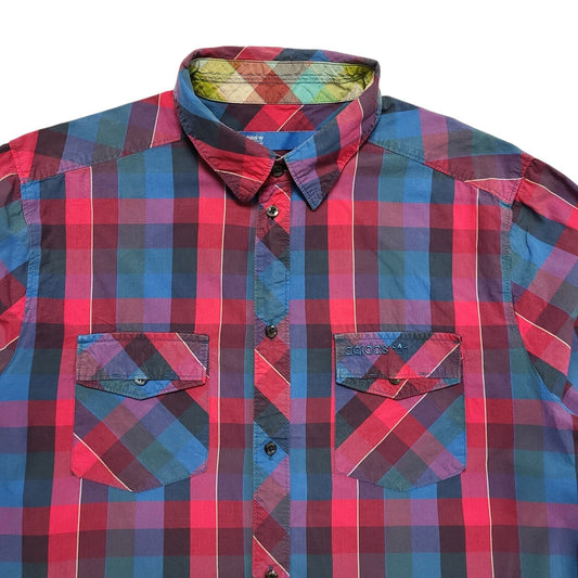 Adidas Vintage 80's Blue & Pink Checked Long Sleeve Shirt Men's UK Size M