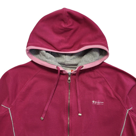 Champion Vintage Y2k Pink Zipped Sports Hoodie Uk Women's Size M