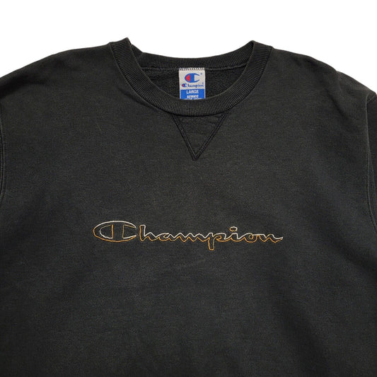 Champion USA Black Crew Neck Y2k Sweatshirt Uk Men's Size Large