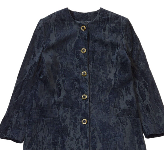 Damart Vintage 80's Blue Button Front Linen Dress Jacket Uk Women's Size 12