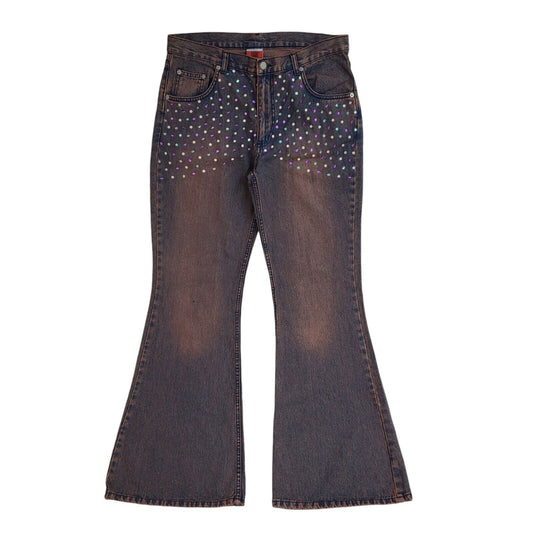 Dare 90s Dark Blue Pink Bootcut Denim Jeans Uk Women's Size 14 W32 L32