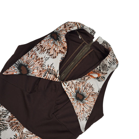 70s Vintage Brown & White Retro Patterned Dress Women's Size 10/12