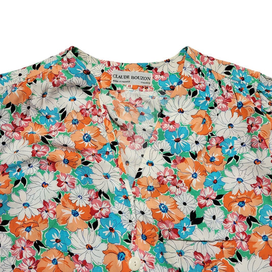 70s Vintage Claude Bouzon Orange Floral Pencil Buttoned Dress Women's 12