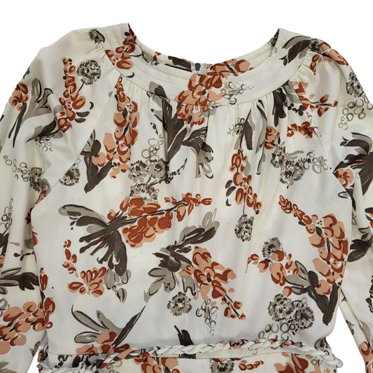 70s Vintage Cream Floral Patterned Rope Belt Daywear Dress Women's 10
