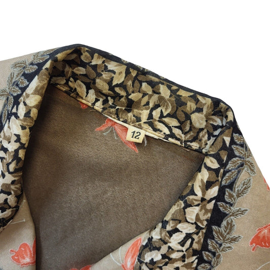 70s Vintage Brown & Tan Butterfly Blouse Women's Size 12