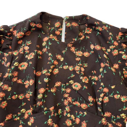 70s Vintage Brown Floral A-Line Dress Women's Size 4-6