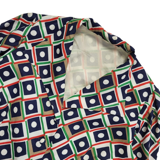 70s Vintage Blue, White, Green & Brown Geometric Collared Dress Women's 14
