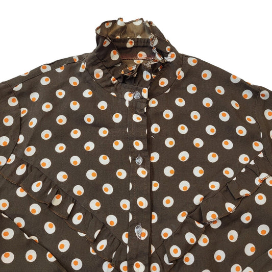 70s Vintage Brown & White Long Sleeve Polka Dot Blouse Women's Size 18