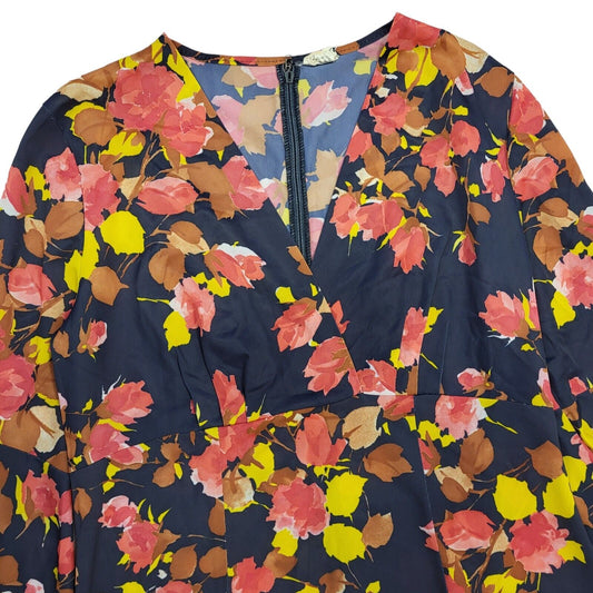 70s Vintage Brown Floral Collared Zip Dress Women's Size 14