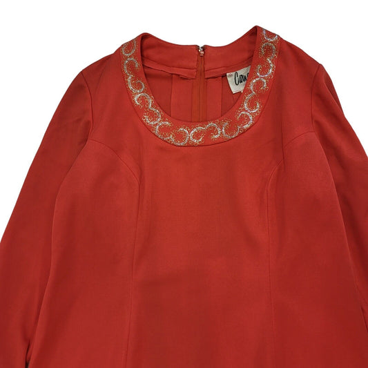 70s Vintage Carnegie Red Zipped Shift Dress Women's Size 22