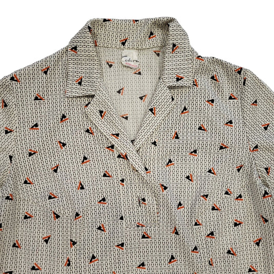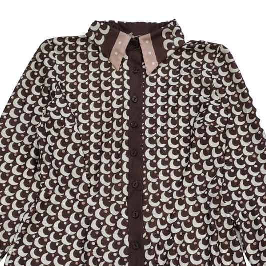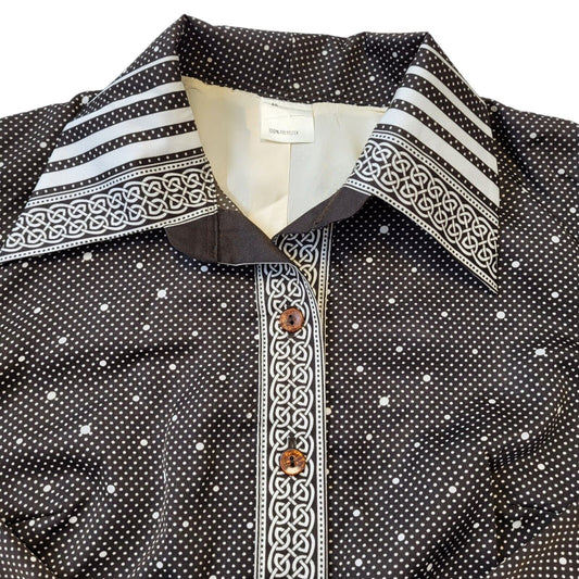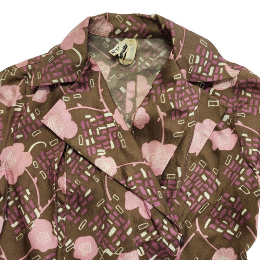 70s Vintage Brown Print Blouse Women's Size Medium 10-12