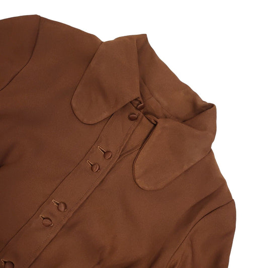 70s Vintage Brown Collared Long Sleeve Maxi Dress Women's 8