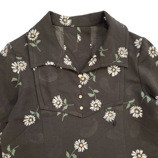 70s Vintage Brown & White Daisy Collared Shift Dress Women's 8