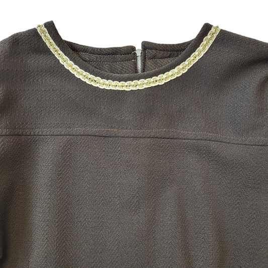 70s Vintage Brown Shift Dress With Gold Trim Women's Size 12
