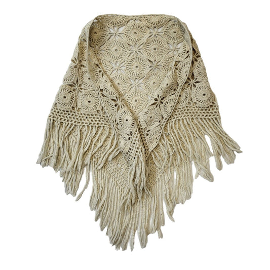 70s Vintage Cream Crocheted Shawl Women's One Size