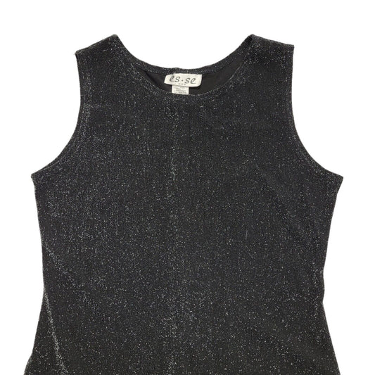 Es.Se Vintage 80's Black & Silver Sleeveless Long Glitter Dress Womens UK L