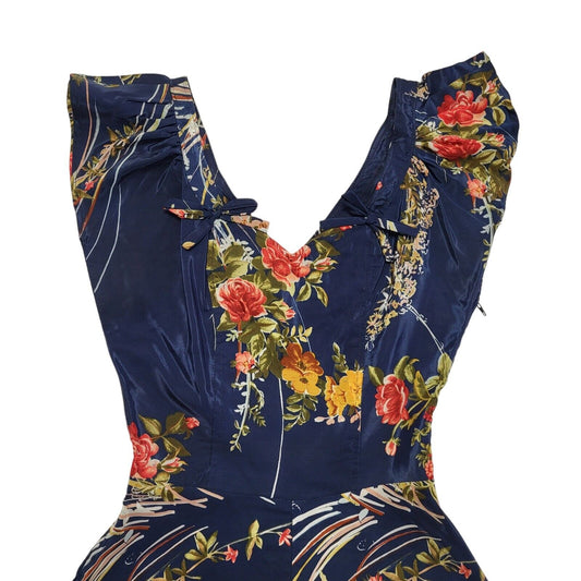 Etam Vintage 90's Blue Floral A-Line Midi Dress Women's UK Size 10