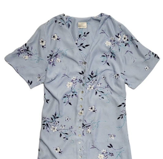 Exclusive 90s Vintage Blue White Floral Print Dress Women's Size 10 EU 38