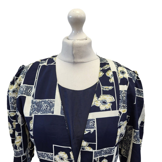 Essence 70s Vintage Blue & Purple Floral Dress Uk Women's Size 18