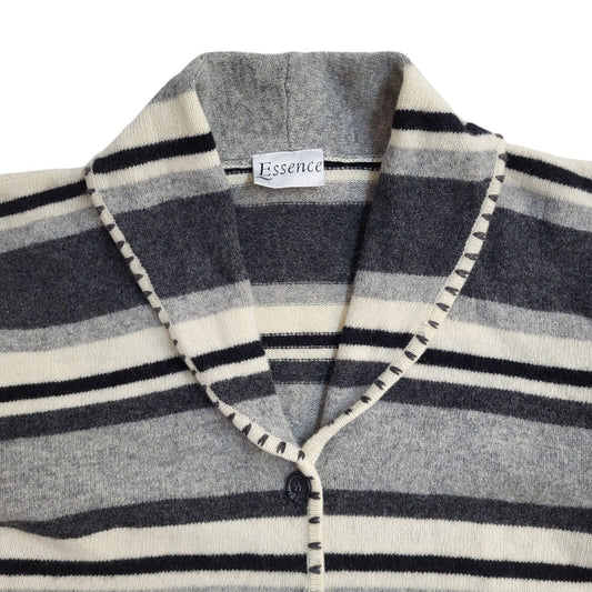 Essence 90s Vintage Grey Striped Button Up Cardigan UK Women's Size 16