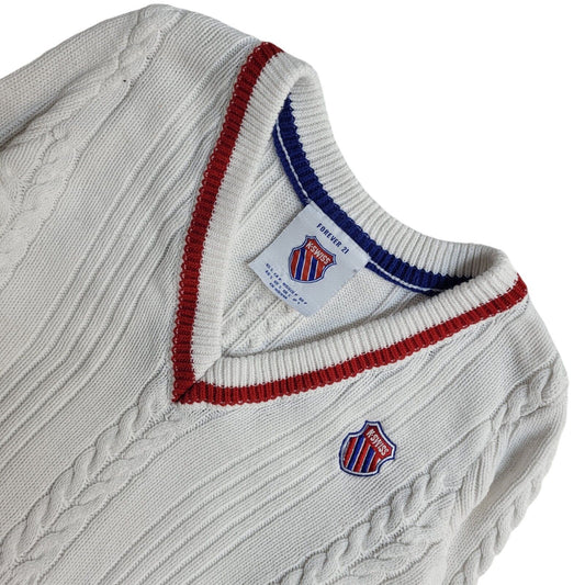 Forever 21 Vintage Y2K White V-Neck Jumper UK Women's Size Small