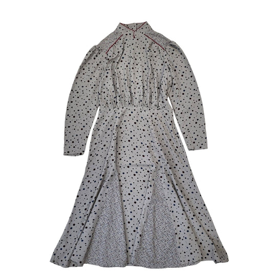 Fiona Dresses 70s Vintage Grey & Burgundy Dotty Dress Women's Size 12