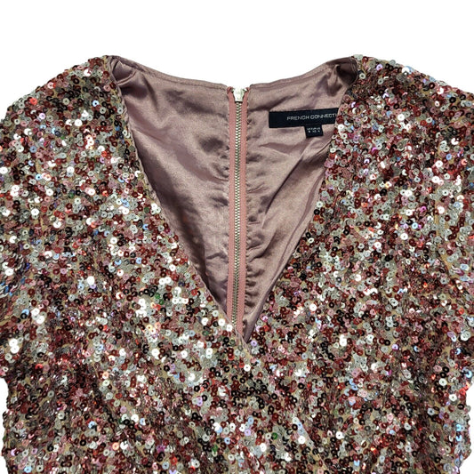 French Connection Y2K Pink Sequin Evening Dress Womens Uk Size 8