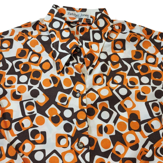 Fletcher Jones 70s Vintage White, Brown & Orange Blouse Women's Size 10