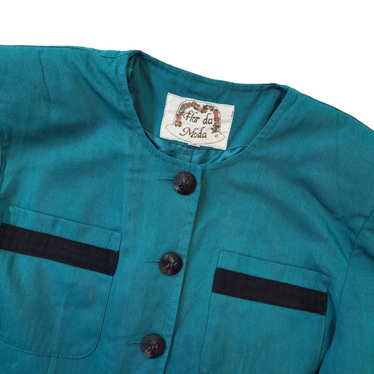 Flor Da Moda 80s Vintage Green Button Up Jacket Women's Size Medium