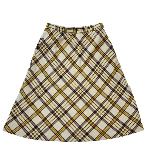 Gorray Vintage 70s Cream & Yellow Check Skirt Women's Size 12 W30