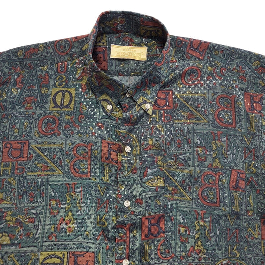 Golden So-End Vintage 80's Green & Red Retro Short Sleeve Shirt Mens UK Size L