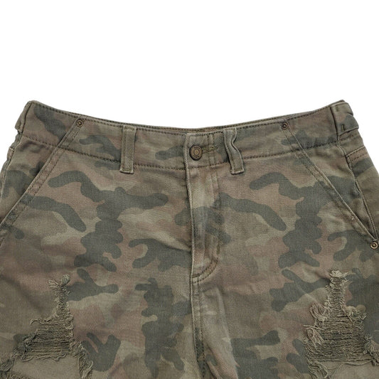 Guess Vintage Y2K Green Zipped Camouflage Shorts Uk Women's Size M W29