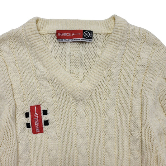 Grey Nicolls Vintage 80's Cricket Cream V-Neck Knitted Jumper Mens UK Size XS