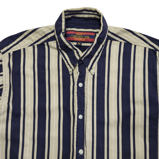 Heavy Construction 90's Blue & Beige Striped Long Sleeve Shirt Men's UK Size XL