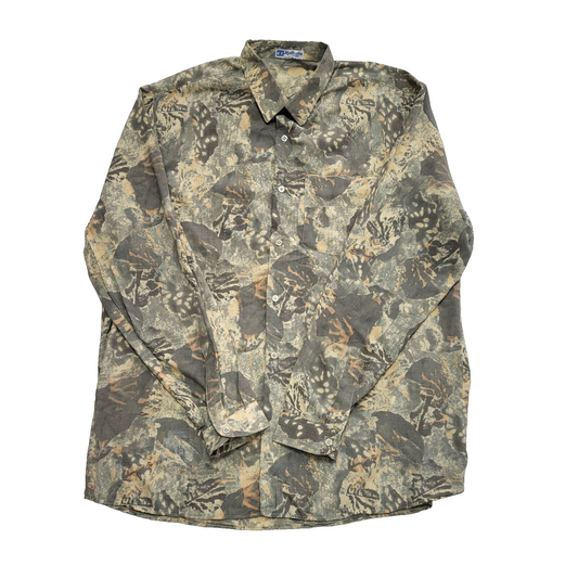 Hathalia 90's Grey & beige Abstract Long Sleeve Shirt Uk Men's UK XL