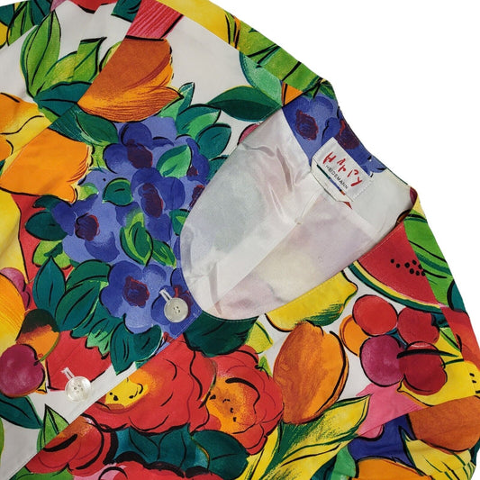 Happy Vintage 80s Short Sleeve Button Up Floral Multicolored Blouse Womens UK 14