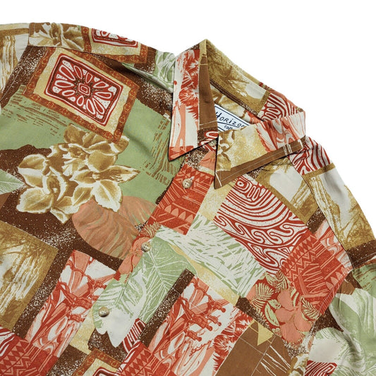 Horizon Vintage 80's Green & Red Floral Short Sleeve Shirt Men's UK Size L